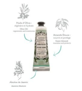 Un mini format de crème mains, facile à glisser dans son sac à main ou à emporter en voyage pour des mains belles et hydratées en toutes circonstances. ✔️ 96% d’ingrédients d’origine naturelle✔️ Parfume délicatement les mains✔️ Packaging recyclable✔️ Crème mains Vegan friendly✔️ Fabriquée en France✔️ A base d’huile d’olive Jasmin Précieux Un parfum…