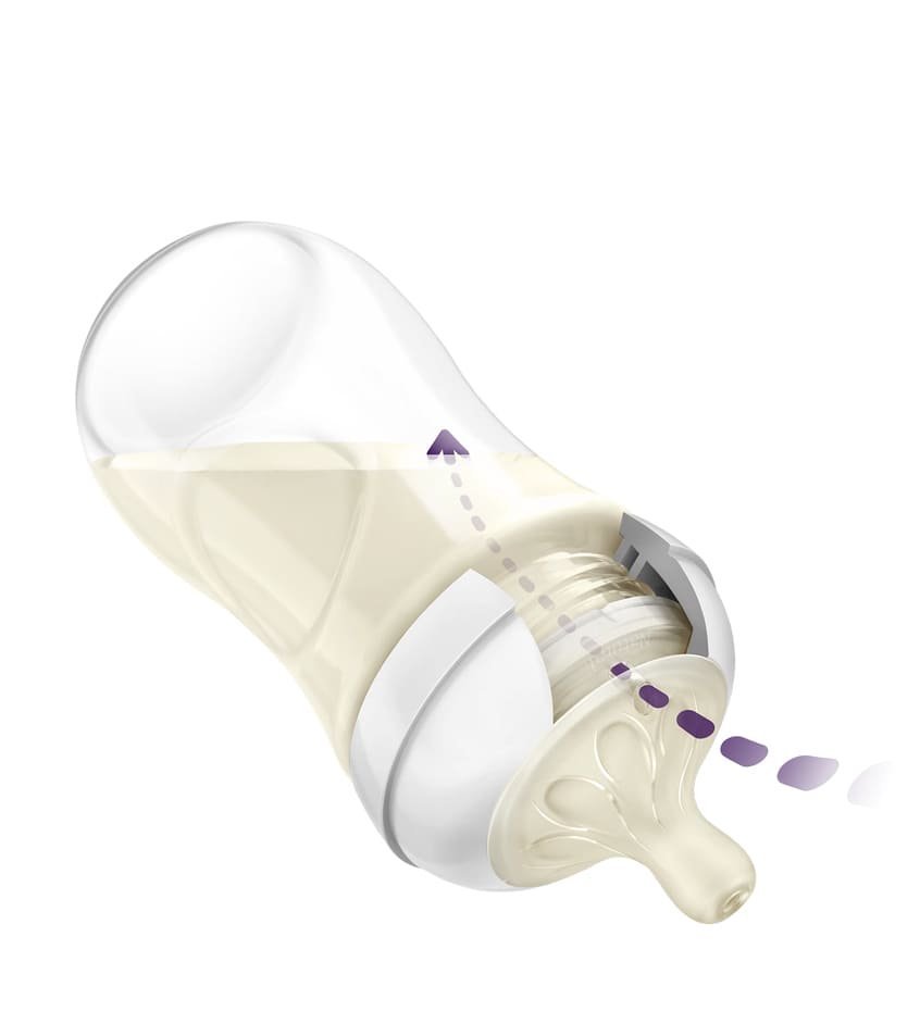 La tétine libère le lait lorsque le bébé tète activement. La tétine Natural Response respecte le rythme naturel de la prise du biberon par le bébé, ce qui facilite la combinaison de l’allaitement maternel et de l’allaitement artificiel. Sa conception unique permet au lait de couler uniquement lorsque le bébé tète activement. Ainsi, lorsque le bébé fait une pause pour avaler et respirer, le flux de lait s’interrompt automatiquement.