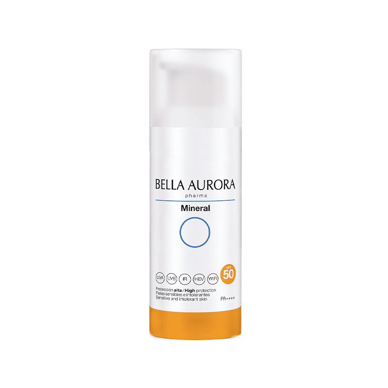 Le Fotoprotector anti-manchas Mineral de Bella Aurora est une crème solaire spécialement conçue pour les peaux sensibles et intolérantes au soleil, ainsi que pour celles allergiques aux filtres chimiques. Sa formule hypoallergénique et son parfum sans allergènes offrent une protection solaire à large spectre SPF50 contre les rayons UVA, UVB, infrarouges (IR), la lumière visible à haute énergie (HEV) et les ondes WIFI
