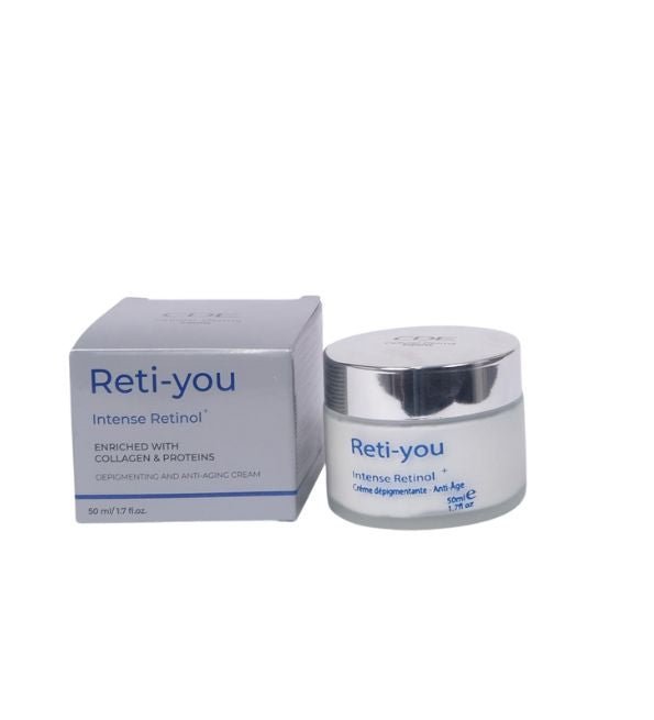Reti-You est une crème intense 2-en-1 conçue pour ses effets anti-dépigmentants et anti-âge. Enrichie en rétinol, collagène et protéines, cette crème agit pour réduire les taches pigmentaires tout en lissant et raffermissant la peau. Le rétinol favorise le renouvellement cellulaire et stimule la production de collagène, aidant à atténuer l’apparence des rides et des ridules. Le collagène et les protéines offrent une hydratation profonde et améliorent l’élasticité de la peau, pour un teint plus uniforme et éclatant de jeunesse. Idéale pour un usage quotidien, Reti-You convient à tous les types de peau et apporte une solution complète pour une peau visiblement rajeunie et lumineuse.