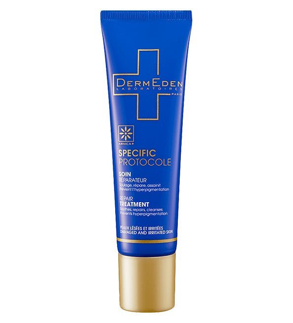 Ce soin est une association unique d’Arnica Montana, d’acide Hyaluronique, de Mimosa Tenuiflora, de Chlorhexidine et de Zinc aux propriétés apaisantes, antibactériennes, réparatrices et anti-inflammatoires. Il est spécifiquement indiqué pour les altérations cutanées faisant suite à un acte dermo-esthétique (peeling, laser, injection…) ou une agression extérieure (coupure, gerçure, irritation…). L’acide Dioïque prévient l’hyperpigmentation de la cicatrice.