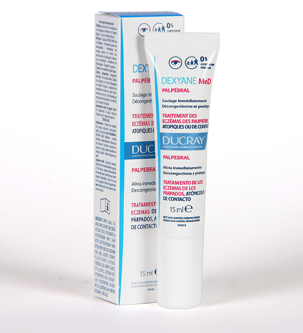 DEXYANE MeD Palpébral est un dispositif médical* traitant les eczémas atopiques ou de contact localisés sur les paupières• Sa formule hautement hydratante agit tel un pansement qui, d’une part soulage et décongestionne, et d’autre part restaure la barrière cutanée et limite l’adhésion des bactéries• Une efficacité cliniquement démontrée et une bonne tolérance• À utiliser seul, en association ou en relais des dermocorticoïdes pour traiter les lésions d’eczémas et limiter leur réapparition*DEXYANE MeD Palpébral est un dispositif médical, produit de santé réglementé qui porte au titre de cette règlementation le marquage CE. Lire attentivement les instructions figurant dans la notice. Ne pas utiliser sur la femme enceinte ou allaitante. Eviter tout contact direct avec les yeux.