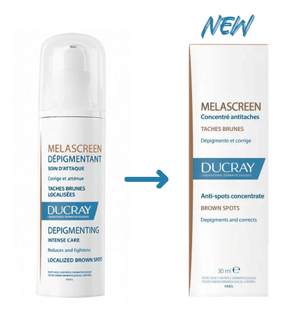 A la pointe de l’innovation, le concentré antitaches MELASCREEN est la 1ère solution dermatologique spécialement développée pour dépigmenter efficacement tous les types de taches brunes installées* grâce à une très haute concentration en actifs dermatologiques dépigmentants (15%). Ils agissent directement à 3 différents niveaux sur les 3 facteurs responsables de leur formation :
