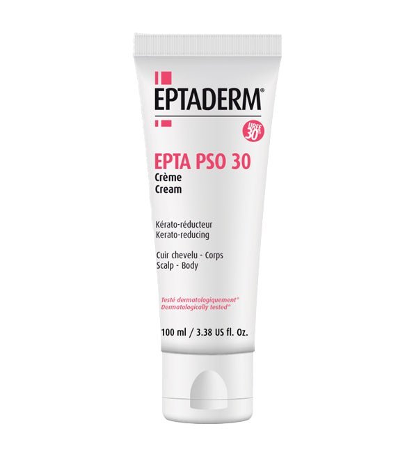 Appliquer EPTA PSO 30 quotidiennement, matin et soir, sur les zones atteintes (mains, pieds, coudes, genoux, cuir chevelu et surfaces pilifères). Étendre avec un massage doux jusqu’à absorption complète.