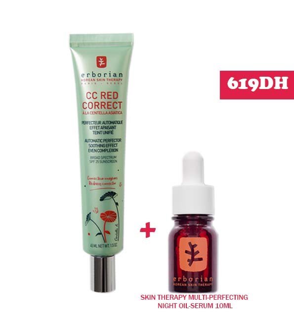 Erborian CC Red Correct Anti redness cream 45ML + Skin Therapy Huile visage multi-perfectrice 10ml