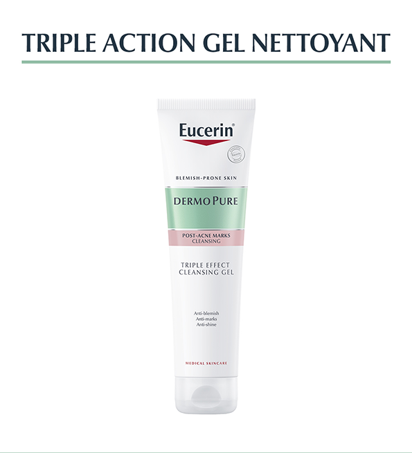 Le Gel Nettoyant Triple Action DermoPure d’Eucerin avec 2 % d’Acide Salicylique vous permet enfin d’aider à lutter contre les imperfections et les marques post-acné grâce à 3 facteurs clés :