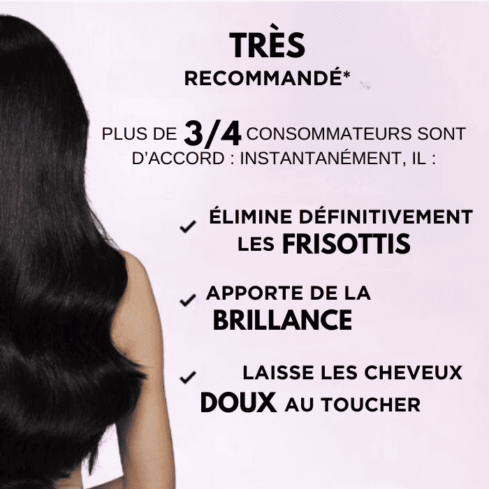Résultats : les cheveux sont lisses et ultra brillants jusqu’à 72h** et sans frisottis pendant 96h***.