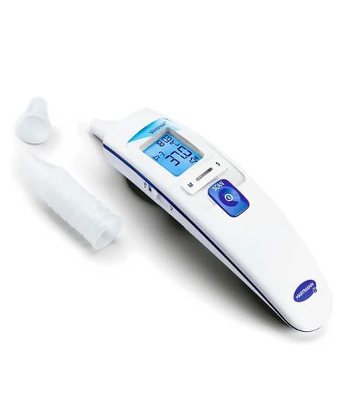 VEROVAL THERMOMETRE INFRAROUGE 2 EN 1 HARTMANN PERMET UNE PRISE DE TEMPÉRATURE FRONTALE OU AURICULAIRE.