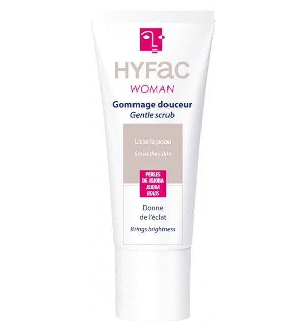 Enrichi en extraits naturels, le gommage douceur HYFAC Woman désincruste les pores et élimine les cellules mortes et les impuretés. Grâce aux propriétés exfoliantes naturelles des billes de jojoba et de la poudre de noyaux d’olive, la peau est douce et nette sans être agressée. Le thé blanc estompe les rougeurs, réduit les taches et illumine le teint. Ce gommage visage doux convient à tous les types de peaux, même les plus sensibles, et laisse peau lisse, nettoyée et débarrassée des impuretés.