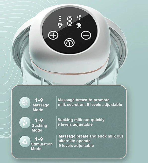 【 3 modes et 9 niveaux d’aspiration 】Le tire-lait portable prend en charge 3 modes (mode de massage/mode de stimulation/mode de succion), et chaque mode dispose de 9 niveaux d’aspiration réglables. Les mères peuvent facilement trouver un niveau d’aspiration approprié pour un pompage efficace.