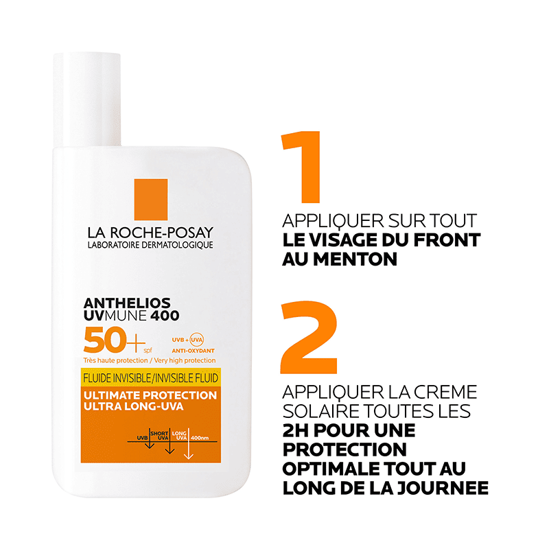Le fluide solaire SPF 50+ Anthelios UVMune 400 est une innovation des laboratoires La Roche-Posay. Il convient aux peaux sensibles et offre une très haute protection contre les rayons UV.ce fluide solaire La Roche-Posay est particulièrement adapté aux personnes ayant la peau normale à mixte, avec une tendance aux brillances durant la journée.