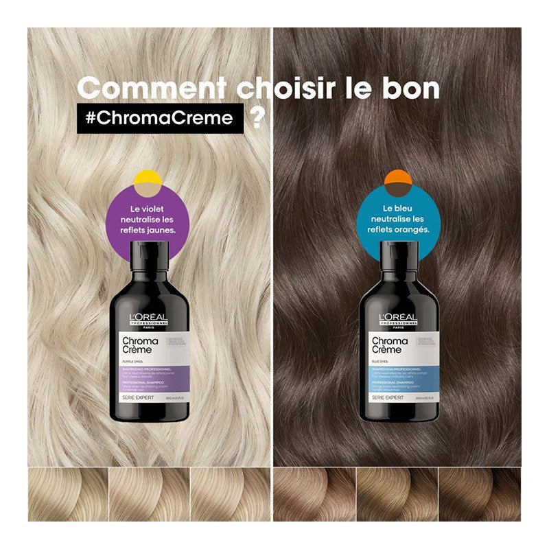 Avec le shampoing Chroma Crème Bleu, neutralisez vos reflets orangés indésirables et nourrissez intensément vos cheveux, comme un pro.