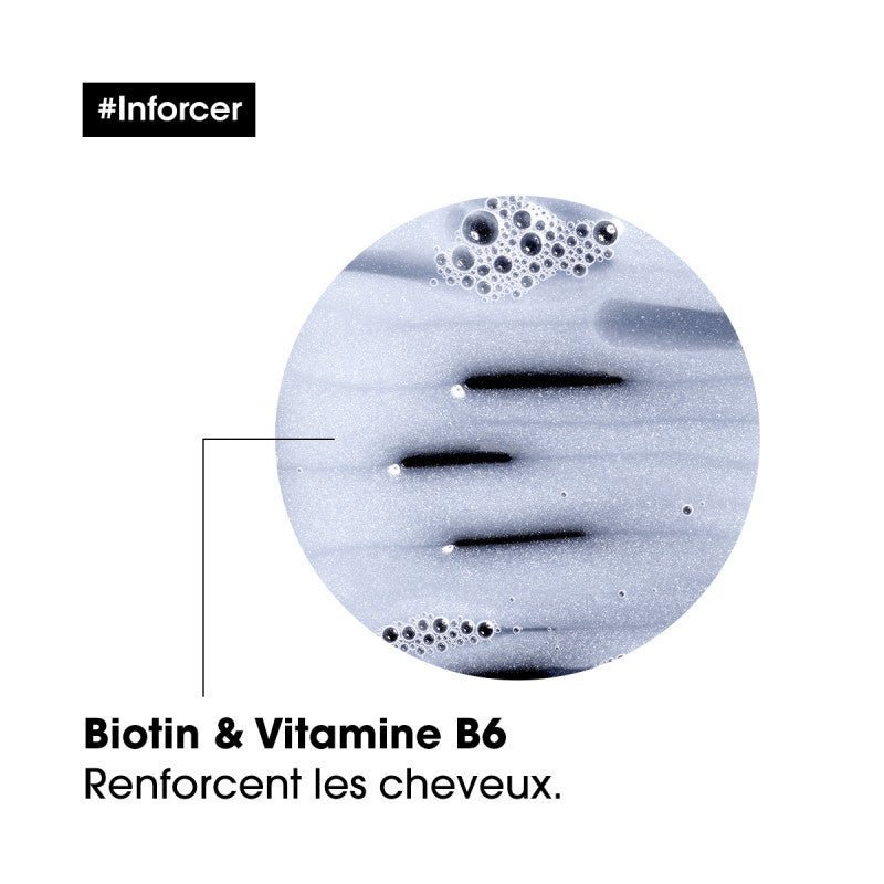 Inforcer de L’Oréal Professionnel est un Shampoing renforçateur et anti-casse. Grâce à sa formule avec vitamine B6 et biotine, la tige capillaire retrouve sa résistance face aux agressions extérieures. Restauré, le cheveu demeure souple et brillant.