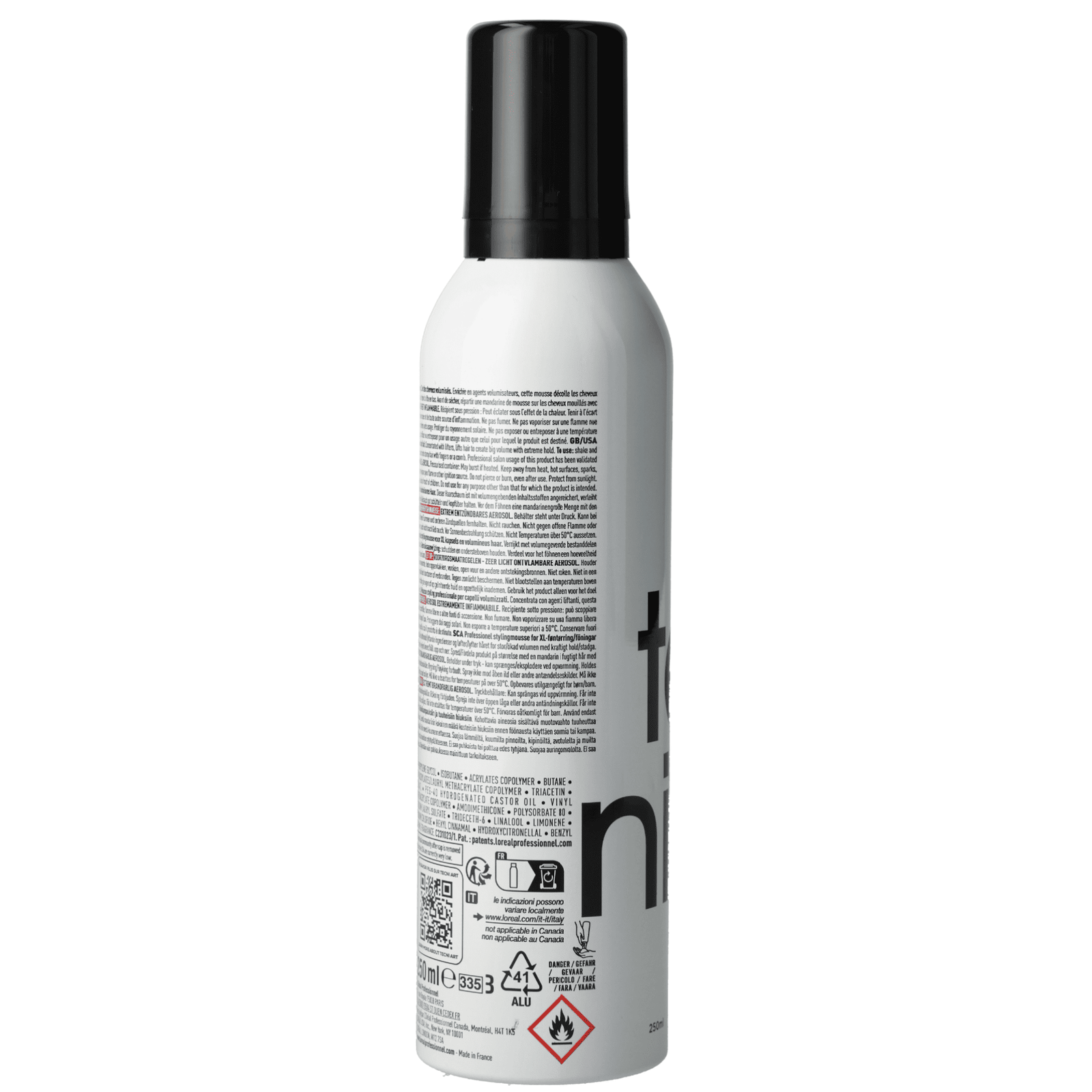 AQUA / WATER / EAU • PROPYLENE GLYCOL • ISOBUTANE • ACRYLATES COPOLYMER • BUTANE • AMINOMETHYL PROPANOL • PROPANE • VP/ACRYLATES/LAURYL METHACRYLATE COPOLYMER • TRIACETIN • PHENOXYETHANOL • ALCOHOL DENAT. • PEG-40 HYDROGENATED CASTOR OIL • VINYL CAPROLACTAM/VP/DIMETHYLAMINOETHYL METHACRYLATE COPOLYMER • AMODIMETHICONE • POLYSORBATE 80 • CAPRYLYL GLYCOL • POLYSORBATE 20 • SODIUM LAURYL SULFATE • TRIDECETH-6 • LINALOOL • LIMONENE • 2-OLEAMIDO-1,3-OCTADECANEDIOL • CETRIMONIUM CHLORIDE • HEXYL CINNAMAL • HYDROXYCITRONELLAL • BENZYL SALICYLATE • BENZYL ALCOHOL • CITRAL • PARFUM / FRAGRANCE (F.I.L. C231021/1).