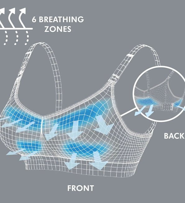 Ce soutien-gorge de grossesse et d’allaitement est doté de six zones de respiration intégrées pour vous garder au frais et d’une nouvelle technologie de séchage rapide pour vous aider à équilibrer la température de votre corps tout en vous assurant soutien et confort.