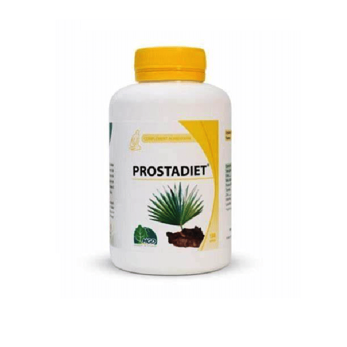 Prostadiet® est une combinaison d’extraits végétaux (prunier d’Afrique, saw palmetto, ortie) et d’actifs (quercétine, bêta-sitostérol, lycopène, zinc et vitamine E).