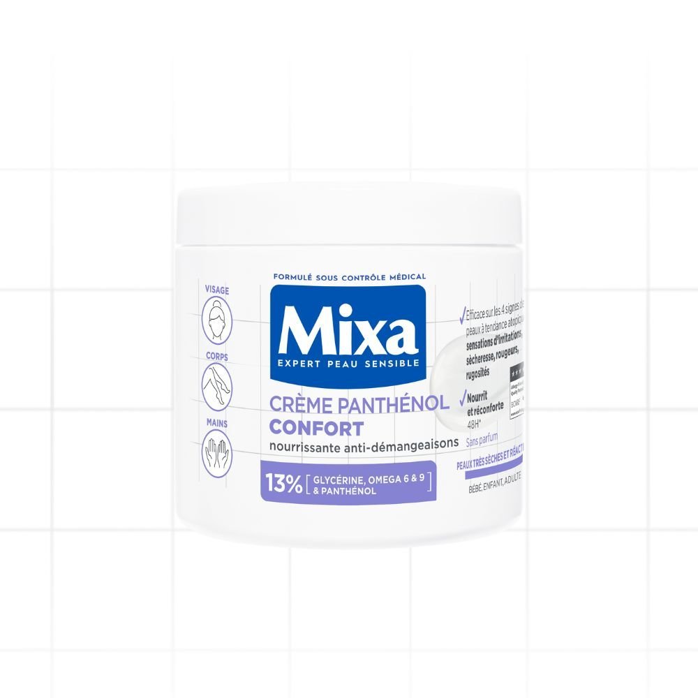 Découvrez la nouvelle gamme innovante de Mixa qui nourrit et répare, la Crème panthénol confort qui apaise les sensations d’irritations, sècheresse, rougeurs, et rugosités.
