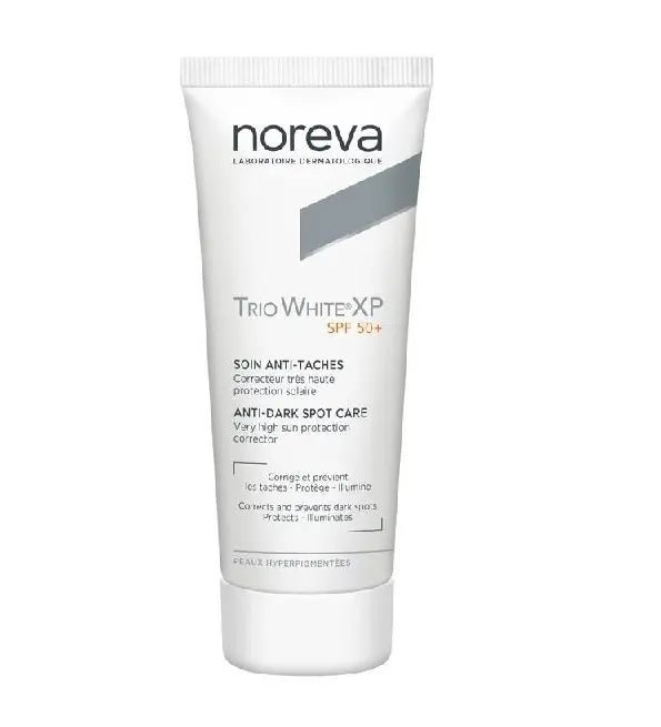 Noreva Trio White S Soin Photoprotecteur Intensif SPF 50 40 ml haute tolérance à la texture fluide prévient et/ou réduit les hyperpigmentations liées aux expositions solaires, masques de grossesse, taches de photosensibilisation, peelings laser, etc.