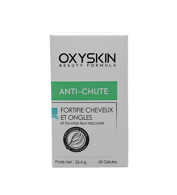 Oxyskin anti-chute premium Oxyskin anti-chute premium freine la chute de cheveux et favorise leur repousse, fortifie les ongles.