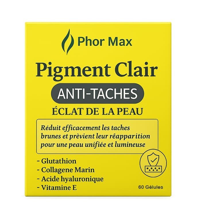 Phormax Pigment Clair est un complément alimentaire formulé pour aider à réduire l’apparence des taches pigmentaires et unifier le teint de l’intérieur. Sa formule associe des actifs antioxydants, dépigmentants et régulateurs de la mélanine, agissant directement sur les mécanismes responsables de l’hyperpigmentation.