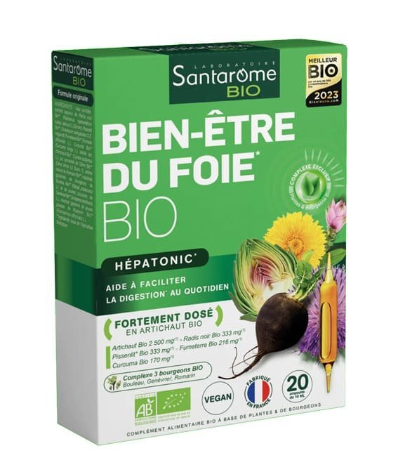 BIEN ÊTRE DU FOIE BIO en ampoules est composé de 5 plantes et 3 bourgeons Bio rigoureusement sélectionnés. Le Pissenlit Bio contribue au confort digestif et aide au fonctionnement normal du foie.