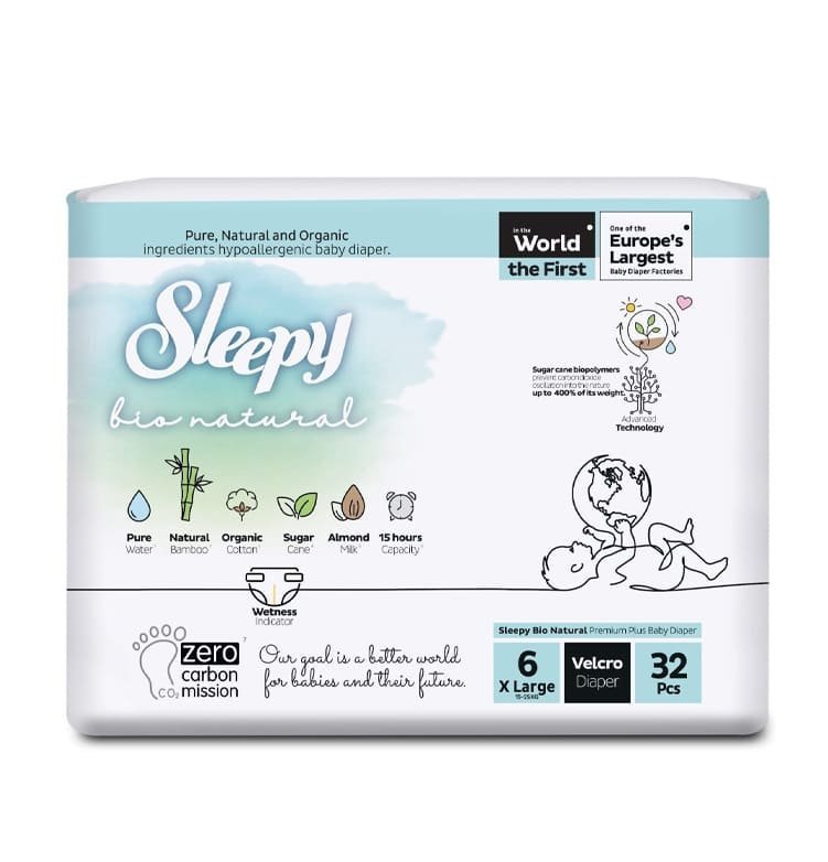 Modèle: 6 – SLEEPY Bio Natural Diaper Double Jumbo XL T6, 15-25KG – Paquet de 32