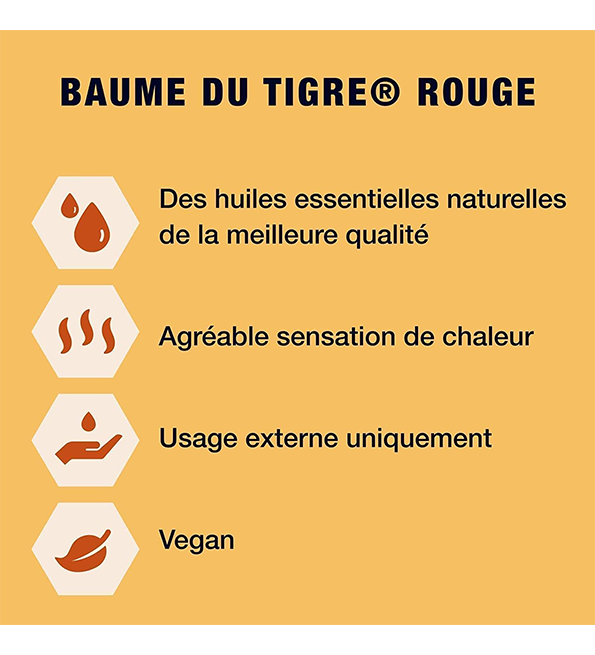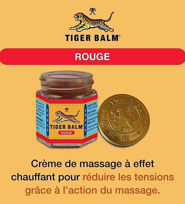 - Le BAUME DU TIGRE Rouge permet de réduire les tensions grâce à l’action du massage Pour les sportifs, idéal avant l’effort grâce à ses propriétés chauffantes