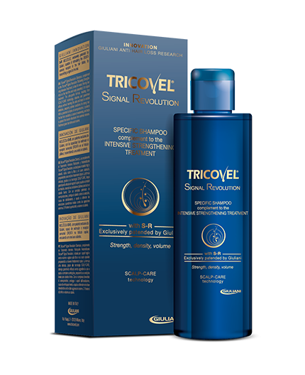 Le shampooing Tricovel® Signal Revolution est le co-adjuvant spécifique du traitement intensif fortifiant et redensifiant Signal Revolution sous forme de lotion. Afin d’optimiser l’efficacité anti-chute de tout traitement topique, il est toujours recommandé de l’associer au bon produit complémentaire. Le shampooing Signal Revolution avec brevet SR soutient l’action du traitement intensif fortifiant et redensifiant Signal Revolution.