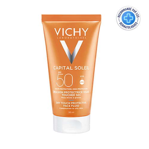 Vichy Capital Soleil Émulsion Toucher Sec SPF50 Peau Sens Mixte à Gras = Lait Après-Soleil Offerte