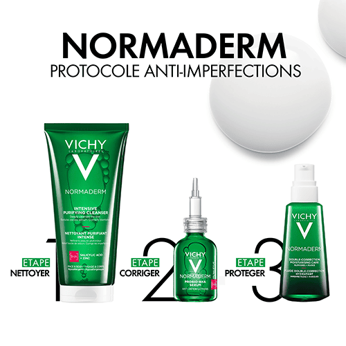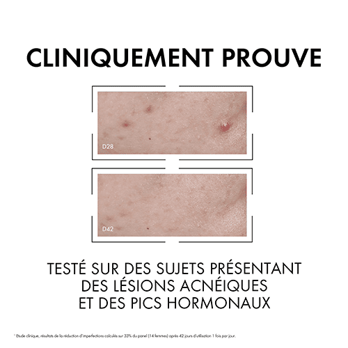 Issu de l’expertise de la science de l’Exposome, ce sérum anti-imperfections est hautement concentré en actifs dermatologiques pour corriger les boutons rouges et points noirs causés par l’acné hormonale. Il contient de l’acide salicylique et de l’acide glycolique, deux ingrédients exfoliants à l’effet peeling doux, et des fractions de probiotiques cultivés dans l’eau volcanique de Vichy pour booster la régénération cellulaire et renforcer la barrière cutanée.