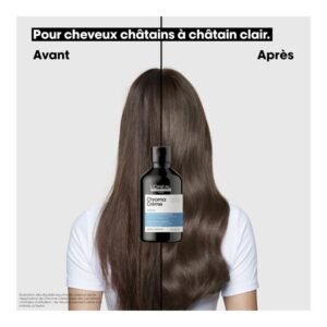 Avec le shampoing Chroma Crème Bleu, neutralisez vos reflets orangés indésirables et nourrissez intensément vos cheveux, comme un pro. Les cheveux récemment colorés contiennent différents colorants de couleurs primaires. Mais, après quelques lavages, des reflets orangés indésirables peuvent apparaître. C’est pourquoi, pour corriger les reflets orangés des cheveux châtains à châtain clair, choisissez le…