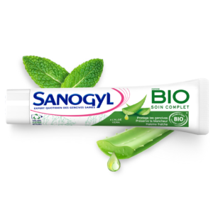 Le dentifrice Certifié Bio pour un soin naturel efficace au quotidien Retrouvez tout le savoir-faire du laboratoire Sanogyl dans une formule enrichie en Aloe Vera Biologique. Connue pour ses propriétés protectrices, le dentifrice Sanogyl Bio Complet vous aidera à lutter contre la plaque dentaire et à soulager les gencives sensibles pour un soin naturel et efficace au quotidien. SANOGYL S’ENGAGE avec ce tube…